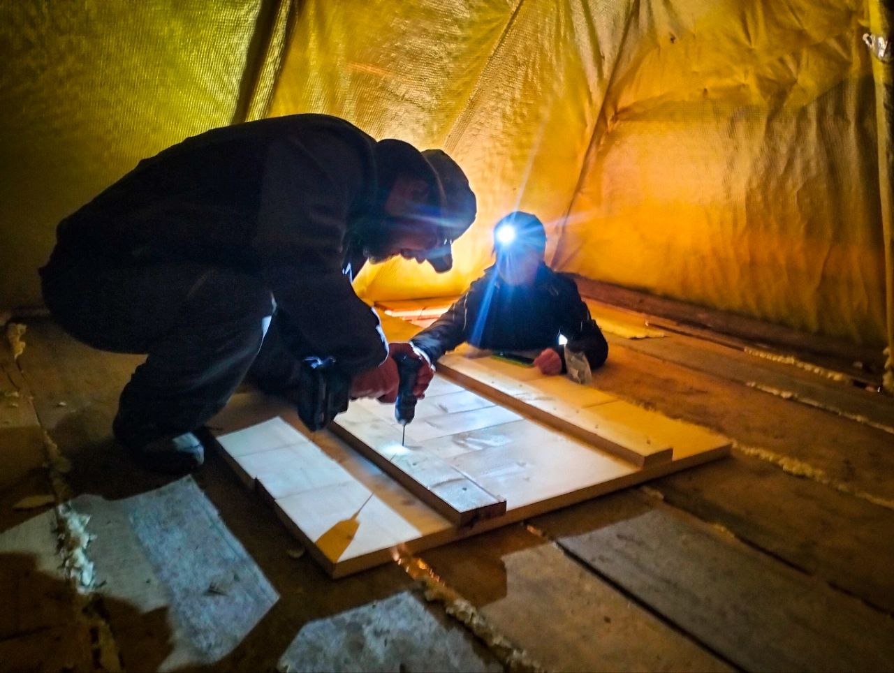 - На горищі ми зробили щит, який закриває вхід. Він не закритий на замок – якщо дуже треба, туди можна потрапити. Але будь ласка, закривайте вхід, щоб всередину не задувало сніг – при опаленні він тане і тече на голову тим, хто в хаті