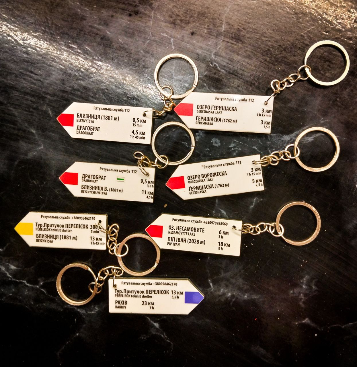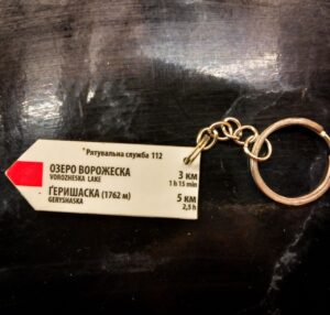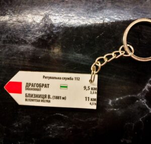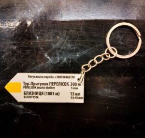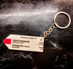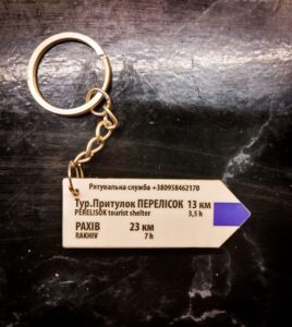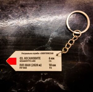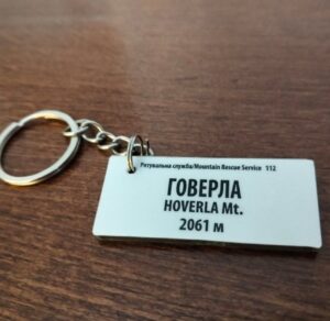 Брелки-вказівники з Карпат – точна копія вказівників, встановлених на гірських маршрутах. Виготовлені з такого самого композитного матеріалу з УФ-друком. Повністю дублюють вказівники, встановлені на гірських маршрутах, включно з актуальними для кожної місцевості контактами рятувальних служб.